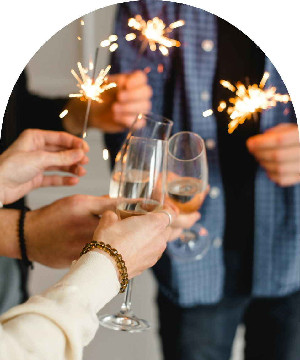 Предложим мастер-класс, который будет интересен всем гостям. Фуршет с игристым вином и закусками.
